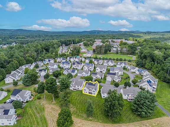 With expansive views of the Holyoke Mountain range overlooking a rolling meadow, this free-standing home commands the prime hillside location in the Bear Hill Estates 55+ condo community. Designed for easy single-level living, this custom layout offers a primary bedroom suite, convenient home office/guest room, laundry, and 2 full bathrooms on the main floor. The open, airy dining room/living room features a cathedral ceiling, gas fireplace, French doors to a sunroom with gorgeous views, and access to a lovely private south-facing deck. Upstairs you'll find 1 additional bedroom, a 3rd full bathroom, and a semi-finished attic room with potential for expansion into a 4th bedroom. In the spacious walkout basement you'll find full windows, a hobby workshop, and more potential for finishing. The owned solar panels maximize the efficiency of the new, dual fuel heat pump/natural gas HVAC system installed in 2024. HIGHEST AND BEST OFFERS DUE SUNDAY 4/13 AT 7PM.