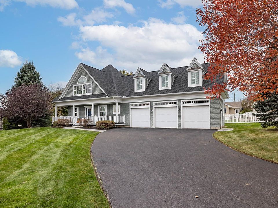 Picture-perfect and priced to sell! A modern, classic cape-style home located in an upscale, quiet cul de sac, less than one mile from downtown Portsmouth. This home will captivate even the most discerning buyer, with its bright and open floor plan and stylish finishes. The kitchen has been updated with newer appliances, a timeless yet modern subway tile backsplash, and white quartz countertops. The kitchen flows effortlessly into the open concept family room with a wood-burning fireplace and French doors to a large deck for al fresco dinners or entertaining. The 3-bay garage entrance to the house is conveniently located next to the kitchen. There is a formal dining room, additional sitting room and an office, all on the main level for quiet time. There is also a powder room tucked away on the main level. Upstairs you’ll find a spacious and luxurious master suite with 2 large walk-in closets and a large bathroom with oversized shower and soaking tub, as well as a vanity with double sinks.There are 2 other large, oversized bedrooms, plus a sitting area and full bath. The finished basement space is perfect for guests, in-laws or a nanny, with a family room, gym and half bath. The roof and central air were recently replaced. There is tons of extra unfinished storage in the attic and the basement. Take a step back in time with the competitive offer price for this home, and a step forward with all the amenities this home has to offer!