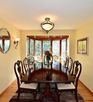 Private, peaceful, perfect and a raised ranch to complete the package. Upgraded ranch with hardwood floors, a beautiful sunroom off of the diningroom, upgraded kitchen, first floor family room, master bedroom with master bath, lower level gameroom and laundry. Relax on the large deck, garden in the generous yard, enjoy the light filled sunroom with a morning cup of coffee. This is better than a patio home with all the amenities and so much more. Could have three bedrooms but would need a few walls added again. Immaculate condition with lots of upgrades and great maintenance.