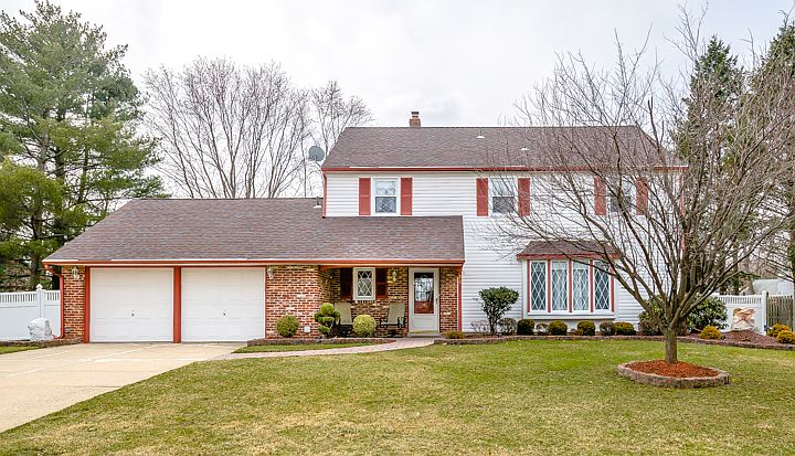 Unlock the front door & move right into this extremely inviting Fox Hollow Colonial - its all ready for its new owners! Just imagine relaxing in a rocking chair on a summer evening on your charming front porch, where you could just unwind or engage with your neighbors in this fabulous community. Enter the center hall foyer with its durable ceramic tile floor and a handy coat closet. Neutral paint tones throughout the home will make it easy to add your own sense of style with a complimentary splash of color! The living room and dining room are both spacious and wonderful for both every day use and and for more formal entertaining of family or friends. Neutral carpeting in excellent condition is protecting original hardwood flooring throughout both the upper and main levels. The eat-in kitchen is stunning with granite counter tops, light maple cabinetry, newer appliances, a ceramic tile floor, lots of storage and meal-preparation space, as well as a slider leading out to the patio. Step down into the large, adjacent family room with its beautiful brick fireplace and recessed lighting which also has a sizable bay window that overlooks the beautiful yard. The master bedroom suite is very spacious with a large closet and nicely maintained master bath. Three additional bedrooms, all with good closet space, and a full hall bath complete the 2nd level. A lovely, finished basement offers more living space and provides even more storage options. An open, level, and completely fenced backyard is a true highlight of this home and features patio areas, paver walk-ways, a sprinkler system and a fun gazebo along with maintenance free vinyl fencing. Worth noting are some newer updates to the home which include the roof, siding, windows and A/C system. The award winning Cherry Hill school district, close proximity to great shops, restaurants, and the summer swim club are just a few more perks of this amazing location!