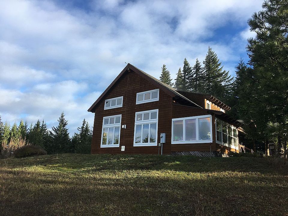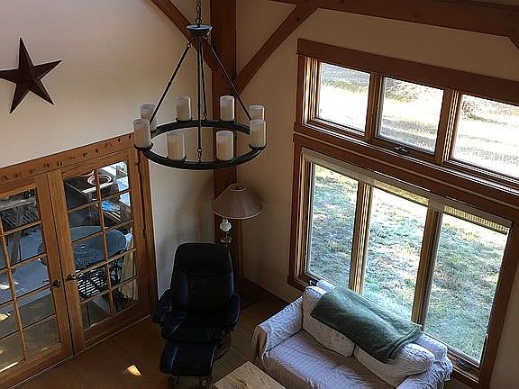Craftman style, custom designed timberframe home is sited in a private forest with mountain and territorial views. Many custom wood details, expansive windows, built-in furniture and quality lighting fixtures are highlights of an efficient foor plan. A wide south facing porch and sunroom provide flexible outdoor space. A patio off the dining room allows additional alfresco space to enjoy the views, wildflowers and wildlife.