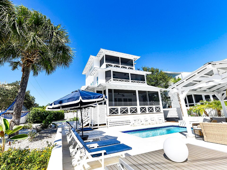 ** South of 30A**Relocation Sale !! Exquisite Custom home completely Refreshed in 2022. This amazing 5-bedroom,4-baths showcase house is nestled on an oversized corner lot in Seagrove Beach Florida. Perfect for primary residence or luxury vacation paradise, providing an immediate feeling of relaxation .Open floor plan ,with crisp white chef's kitchen, high end appliances, oversized white quartz island ,coastal living cabinetry ,floor to ceiling white shiplap, euro sliding doors opening to a magnificent porch overlooking the pool. Master suite includes fireplace, sitting area, wet bar ,walk-in closet , soaking tub & private porch. Amazing kids bunk room and guest suites .Serene outdoor living ; cabana, ,fireplace, grilling area , hammocks ,outdoor shower and kids play area.so much more.