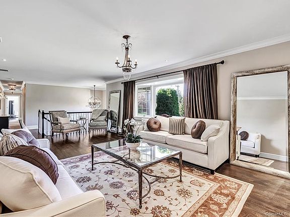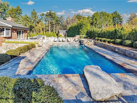 Your private paradise awaits at 20 Brushwood Rd, a stately raised ranch that will wow you with all of its amenities. This compound features 4400+ sq ft, flexible living spaces, a beautifully manicured backyard with a gunite pool, an expansive in-law apt, & newly renovated guest quarters. The living room has a wood-burning fireplace & is steps to the dining room & spacious eat-in-kitchen. The statement-making family room has cathedral ceilings, an enormous custom stone wall, fireplace & wet bar. Glass sliders open to an entertainers dream the heated, saltwater pool is complemented by pristine landscaping, Jacuzzi, flagstone patios, built-in propane grill & poolhouse. Escape the everyday in the luxurious primary bedroom suite which features a gas fireplace & sound system, a dressing room w/ brand new washer/dryer, & an en-suite with a jetted tub, walk-in shower & double vanity. Three add'l bedrooms & a full bathroom complete the main level. The LL offers the option for an in-law suite, with 2 add'l bedrooms, a full bath, family room/eating area, EIK & sliders to the patio. Refinished hardwood floors, temperature-controlled 4 car garage, oversized driveway with stone wall, custom closets, full house generator, new utilities, storage shed & security system complete this immaculately maintained property. Located in a quiet, walkable neighborhood, close to Stamford, New Canaan, Pound Ridge & minutes to I-95, the Merritt & Metro North, this home is truly a one-of-a-kind oasis.