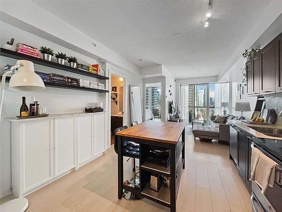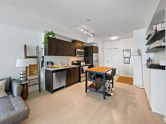 Stunning One Bedroom Suite, Boasting A Spacious And Functional Open-Concept Living Space With A Great Layout, High Ceilings, Floor-To-Ceiling Windows & Wall To Wall Balcony. A Large Kitchen Area With Quartz Countertop, Tile Backsplash And Full Size Appliances. Walking Distance To Groceries, Lcbo, Street Car, Parks And Lake.
