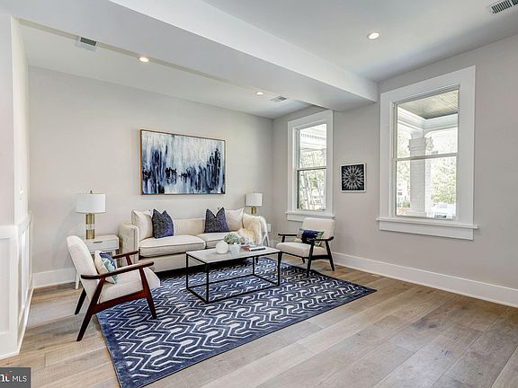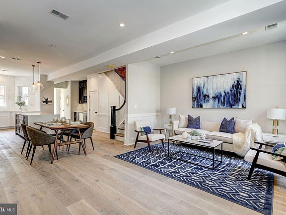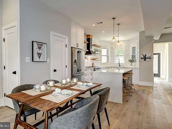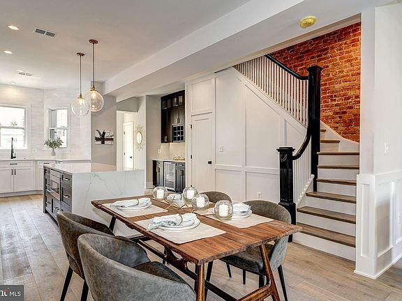 Completely renovated 4 level Wardman-style row house with 4 bedrooms and 4.5 baths in Bloomingdale. Natural light and European white oak flooring throughout. Custom moldings, recessed lighting, and exposed brick walls. Gourmet kitchen with white oak open shelving, stainless steel Frigidaire appliances, marble subway tile backsplash and waterfall counters. Main level half bath and deck off the back, with large back yard and 2-car parking pad. Upstairs, the master bedroom has a full bath en suite, and his and hers closets. Washer and dryer in upper level, and optional laundry hookups in the lower level, also plumbed for lower level kitchenette. This home has a 2-zone HVAC system. Tucked away on a tree-lined street, you have access to active city life with the warmth of an established neighborhood. ~