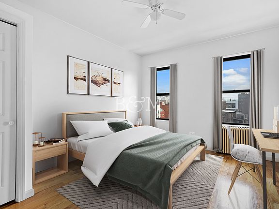 Come live just two blocks from a park! Heat & Water are included in the rent. TENANT PAYS BROKER FEE. 680+ credit score required. $136,000+ annual income required. This home offers two bedrooms on opposite sides, providing plenty of privacy. One bedroom can accommodate either a Queen or a King bed, and the other can accommodate either a Full or a Queen. The unit features high ceilings, ceiling fans, and tall windows. The kitchen is equipped with stainless steel appliances. Location: Just two blocks from Graham Ave a convenient place to live. There are great coffee shops and bars, restaurants of all cuisines, specialty shops, and multiple grocery stores. Renowned Williamsburg nightlife is also within walking distance! Transportation: 2 blocks to the L train (Graham Ave), 5 blocks to the G train (Lorimer/Metropolitan Ave). Parks: Cooper Park, McGolrick Park, and McCarren Park. Laundry in the building. Wired for Fios. Pets are welcome. Please do not call or text. All inquiries should be made via this portal only. Thank you.