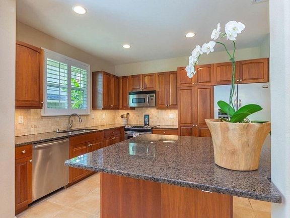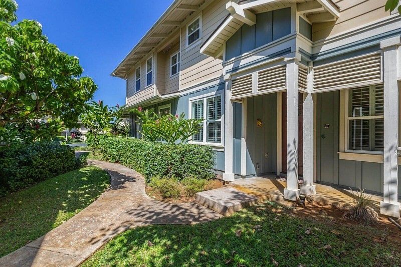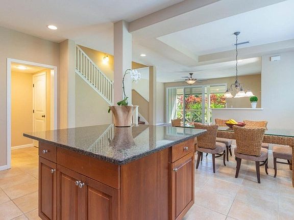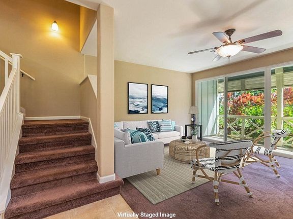 Nihilani at Princeville is a newer luxury townhome community located on Kauai’s iconic Northshore. With impeccably maintained tropical grounds, resort-style pool, central a/c, high ceilings, 2 car garage and Low HOA fees, no wonder Nihilani is such a popular choice as a vacation rental or primary residence. This spacious two story, end unit is positioned on the perimeter of the property with views of the golf course, lake, and mountains from the oversized master suite. The townhome is the most desired "Makani" design with 1874 SF of living area consisting of an expansive living and dining room, kitchen, lanai, 1/2 bath and garage on the first floor, plus 3 bedrooms, multiple lanais, optional office/4th bedroom, and separate laundry room on the second floor. The townhome is being sold partially furnished. Developer Upgraded Features Include: Plantation style shutters Granite Slab counters Specialty tile flooring Custom tile accents in bathrooms Enjoy easy living in Princeville with the newly expanded 2.1 mile walk/jog path and accessibility to all the amenities one would expect in a resort community including golf, tennis, restaurants, and shopping. World class surfing at Hanalei Bay and beautiful northshore beaches are just a short drive away.