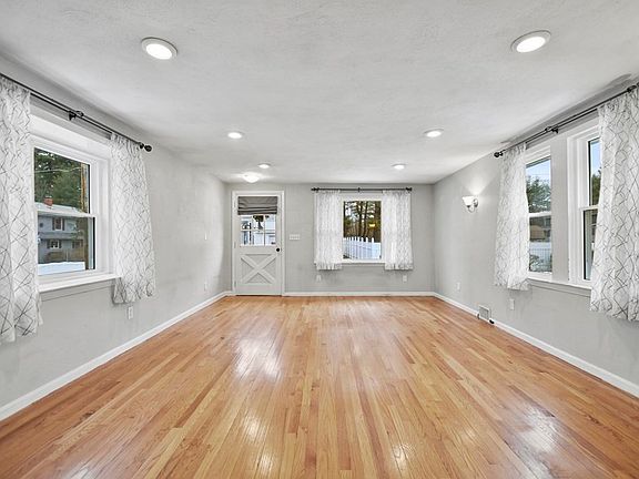 Here is your chance to own a cozy 2 bedroom, 1 bathroom home conveniently located in Tewksbury! Set on a level lot with a partially fenced in yard, this home is ready for its new owner! Come inside to the sundrenched living room to find gleaming hardwood floors and a large picture window. Check out the kitchen providing ample storage space and sightlines into the dining area. Off the dining room is a mudroom – perfect for New England winters! The 1st floor primary bedroom offers a spacious closet and high ceilings. The additional bedroom with access to the back deck through sliding doors and full bathroom wrap up the first floor. Need more room? This home offers a partially finished basement perfect for guests, storage, entertaining and MORE! Additional features include new windows and roof (2022) and tied into town sewer in 2023. You will not want to miss this!