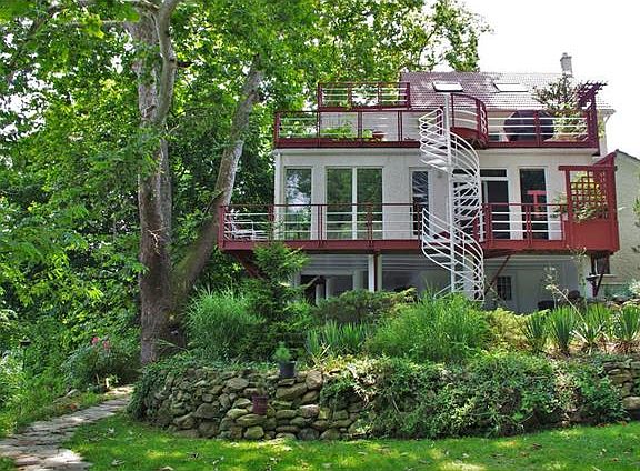 RIVERFRONT - This 4Bd/2Ba Contemporary Colonial with a European touch offers 4-Story Living on an unprecedented 6.46 acres of River Frontage, created by Local Artisans with Stone, Tile, and Exotic Woods from Around the World. Enjoy the eye-catching Custom Dutch Doors and Free-floating Stairs that artisan cabinet makers sculpted from 200-Year Old Oak, and a 2-Level Custom Bath with 14-foot tree. Floor-to-Ceiling Windows fill the home with Light, Warmth, and Beauty. Entertain your guests on 4 Levels of Decks and Patio overlooking 2 Decorative Ponds with a Waterfall, Utility Shed, abundant plantings, forest patio with fire pit on the property's nearly Half-a-Mile of Unspoiled Riverfront located within the Delaware Canal State Park. Your Nature Retreat is 90 minutes from NYC or Philadelphia, ready to enjoy Boating, Kayaking, Biking, Fishing, or Bird-Watching. 10 mins to I-78, Easton Restaurants, Farmers Markets, and close to all Lehigh Valley & Bucks County Attractions.