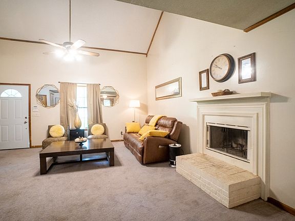 • Features: Ceiling Fan(s), Fireplace-Wood, Solid Surface Countertops