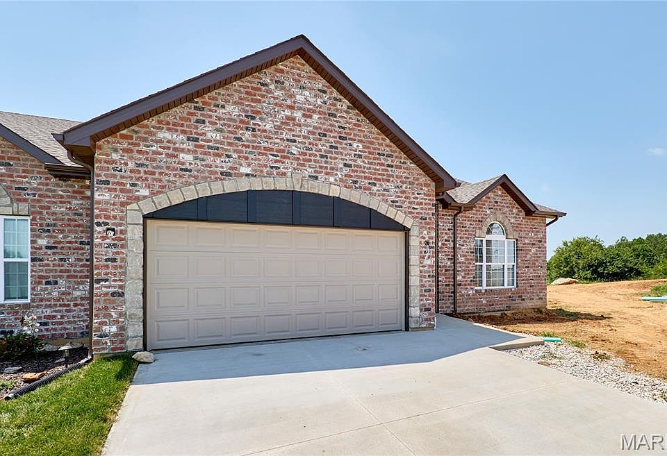 New Construction villa with over 1600sf of living space in Moscow Mills. Stunning brick & stone elevation exterior w/ delightful architecture features inside the home. Main floor has 9' tall ceilings w/impressive great room, vaulted ceiling, beautiful fireplace. Laminate flooring throughout great room, breakfast room & kitchen. Enjoy cooking in a lovely kitchen featuring custom cabinetry, huge island, solid surface counters, SS appliances opening right into the bright breakfast room. Spacious master w/vaulted ceiling, large master bath w/separate tub, shower, dual sinks & spacious walk-in closet. Also on main level 2 nice sized additional bedrooms, full bath & laundry area. Lower level is unfinished and ready for your finishing touches. Great location, minutes from Hwy 61 & Hwy 47! Villa in final stage of construction, photos represent similar finishes & layout of finished property. Builder is offering $10K in seller paid closing costs, if closed by the end of 2025.