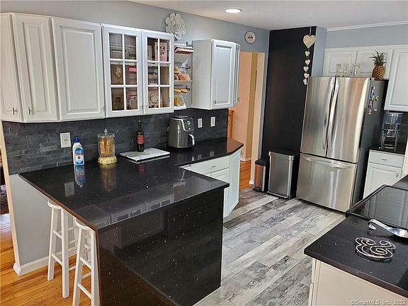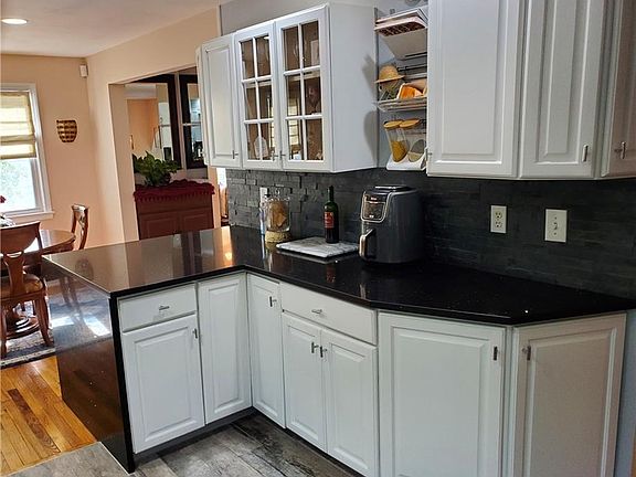 2400 sq. ft. expanded RR in a great location! Beautiful remodeled Eat-in-Kitchen with separate breakfast bar, Quartz countertops and newer appliances. Formal Dining room with built-in window seat and storage. Main level Living room addition is 20' x 18' with a gas fireplace, cathedral ceiling, palladium window and sliders to a private deck. Master Bedroom with full bath. Lower level has great potential for an in-law apartment. "L" shaped Family room with 1/2 bath & separate laundry room. Additional 20' x 17' Rec room or "Man Cave" and a 4th bedroom. Hardwood floors & Central Air. Firepit in newly fenced in yard. Situated on approximately 1/3 acre. Beautiful Foyer addition. 2 car garage.