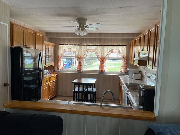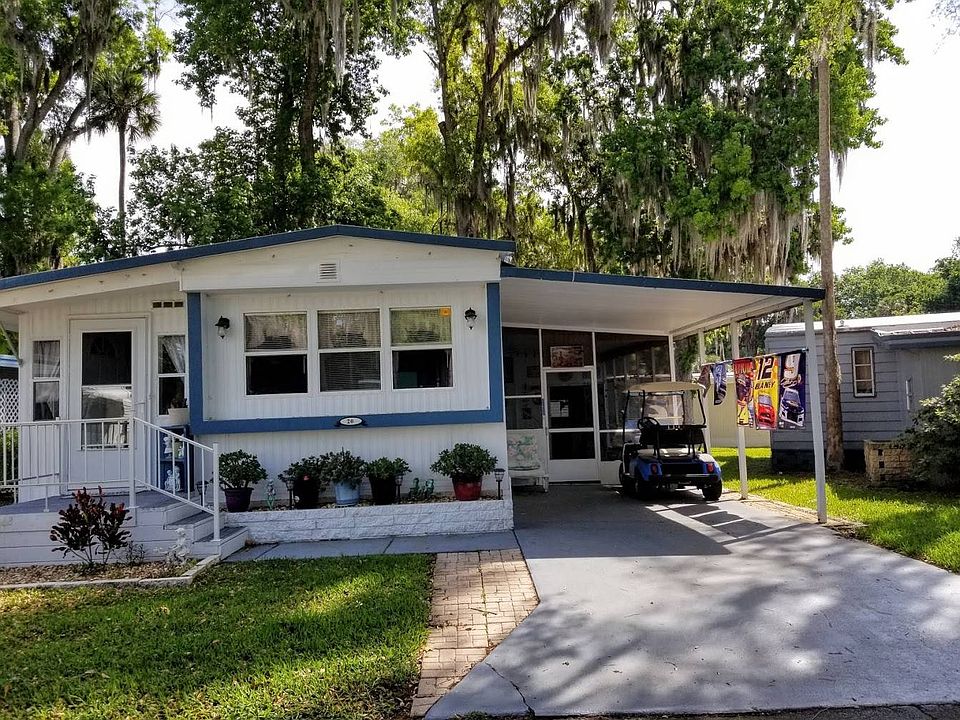 This well maintained home is located in beautiful Carriage Cove a 55+ Community. This beautiful home has so many upgrades and features an open floor plan. This home has a new AC unit in 2015 along with ceiling fans. Beautiful kitchen cabinetry and counter tops installed in 2015 along with an upgraded new shower and toilet in the bathroom. All the new windows and paneling thru out home, the upgraded electric, the new dishwasher, new subfloors and the new flooring thru out home was done in 2018.. This home has a new convienent front porch and also a side entrance (Upgraded Doors). Washer and dryer hookups are located in the large shed which is just off the recently screened in carport sun room. Just sit outside in this nice quiet lovely neighborhood. This home has beautiful curb appeal and is close to shopping, restaurants, beach, race track and many other activities. Make this your forever or snowbird home; you'll be very happy. ALL INFORMATION IS DEEMED AS ACCURATE BUT NOT GUARANTEED. Additional fees for amenities may apply. Agent and or company is not responsible for quoting current monthly fees, lot rent, or dues/fees associated with the community or home. Those figures are the responsibility of the buyer and community manager/owner to disclose/obtain.