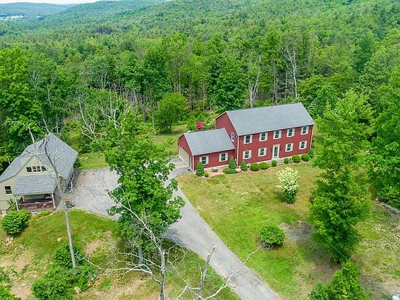 At the end of the cul-de-sac is a winding driveway leading up to this hidden treasure close to the Brimfield State forest and abutting conservation land. The property includes 11+ acres of landscaped yard and professionally managed woodlands with scenic views and ultimate privacy. The home has been meticulously maintained with many upgrades during the owners stay. Ideal set up for in-law living on the first floor with the option for a second kitchen, sitting room, and bedroom. Large master bedroom suite includes a dressing area and oversized walk-in closet. The finished walkout lower level is above grade and heated with 2 large rooms and a storage area. Owner installed wood & coal furnace to provide additional warmth and savings. The 2005 addition of a "bank barn" offers ample room for a workshop, an office, and equipment on three levels. A perfect location to enjoy the country life in Brimfield.