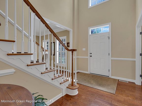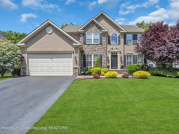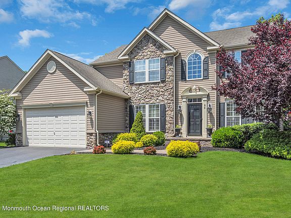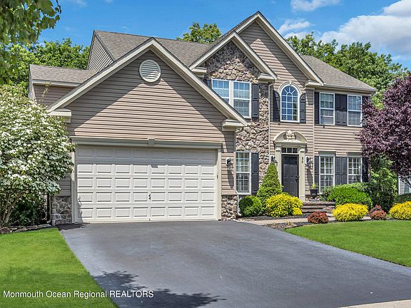 Elegance, sophistication and remarkable details abound in this move-in ready 4/5 bedroom, 3.5 bath home that is located in one of the most desirable communities in Barnegat. Open floor plan and seamless living between the indoors and outdoors make this home exceptional. The 1st level features a 2-story entry foyer, custom millwork and gleaming engineered hardwood floors throughout. The formal living room and dining room make holiday gatherings easy. The beautiful gourmet kitchen features double wall oven, 42 inch cabinets, stainless appliances and granite countertops. Attached you will find a morning room which is incredible for enjoying meals while looking over the resort style backyard. The large family room has a beautiful gas fireplace with a wall of windows surround. There is a convenient 1st floor office that can easily be the 5th bedroom. The 2nd level features a spacious master bedroom suite with sitting room, and huge walk in closet. The luxurious bath has dual sinks, whirpool tub and water closet. 3 additional large bedrooms and one with full bath complete the 2nd level. If that's not enough there's more...The finished Lower Level has a theater room, a private room, a game area, alcove suitable for a bar, a full bath and is sure to provide endless hours of entertainment. The backyard oasis that's sure to impress where you'll find an inviting heated in-ground pool surrounded by an attractive patio and lush green lawn with complete privacy on this premium lot. 20 Carriage Way is the perfect place to call home.