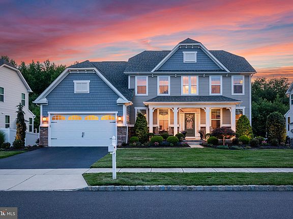 Wonderfully upgraded home situated on a premium lot backing to woods in the Devonforde Estates development in Marlton! This home was built just six years ago and shows like new! The beautiful front porch and custom landscaping and concrete work are exquisite! As you enter this home you are greeted by a two story foyer with curved wooded staircase, upgraded banisters and hardwood floors! Off of each side of the foyer are the formal living & dining rooms both with hardwood floors and crown molding. The gourmet kitchen opens directly to the large family room and both are oversized as they were built with extra square footage making this space feel extraordinarily large and perfect for entertaining! The kitchen is complete with large center island, custom cabinetry, granite counters, recessed lighting, tile backsplash, stainless steel appliances and large eat in morning room. There is also an upgraded butler’s pantry and walk in pantry! The family room has upgraded gas fireplace, recessed lights and the hardwood runs throughout this space as well! There is also an extra room with living space currently being used as a den but could easily be a study or even a 1st floor/5th bedroom! Upstairs are four great sized bedrooms all with ceiling fans and new carpeting. The primary suite offers a tray ceiling, his and hers walk in closets, and a luxurious ensuite bath with Roman shower and his and hers sinks! The basement covers the full footprint of the home and has so many possibilities for finishing. Outside is like a personal resort- the back yard offers ultimate privacy with full vinyl fencing! There is a trex deck with lighting and a retractable awning off of the main living area- this deck is waterproofed as well so you can enjoy sitting underneath or use that area for storage. The heated, salt water pool sits perfectly in the yard and features a waterfall feature! The yard has custom, professional landscaping throughout as well. All of this plus a security system, tankless hw heater, front and back irrigation, interior surround sound and water softening system! This home is a must see! Make your appointment to see this great home today!