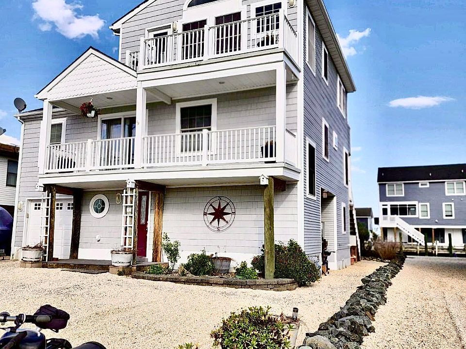 Looking for a fabulous move in ready freshly painted waterfront home with spectacular views, then look no further! The sunrises & sunsets are stunning from any angle inside & out! This 2480sq. ft. beautiful lagoon front home with bay views offers 3 bedrooms, 2 1/2 baths, balcony/living/dining/kitchen w/stainless appl., master bed & bath w/skylights, sitting area & its own front and back balconies. Hardwood floors on the 2nd and 3rd levels. A gas fireplace, surround sound, new light fixtures, & fans. 1st level foyer area, heat & AC garage w/workshop w/ 2 garage doors opening from the front or side, French doors leading to the den/office/bedroom (that can also be used for extra bedrooms). Outside shed w/electric for extra storage. Dock has electric & water. Make your appointment today! Only 1 minute from Tuckerton Beach, 30 Minutes to Long Beach Island & Atlantic City. 7 Minutes from Tuckerton Seaport where you can take the ferry to LBI. 1 canal over from the open bay. Great potential for an Air B & B or a vacation home for friends & families of all ages!