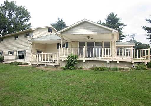 HILLTOP PICTURESQUE COUNTRY SETTING FOR THIS SPACIOUS SPLIT ENTRY w/beautiful views of pond & land. Three bedrooms, 2 1/2 baths, lovely eat-in kitchen, vaulted ceiling in living room, family room, delightful sunroom & porch. Situated on 4.563 acres, three car detached garage w/workshop, 26 x 36 pole building & barn.