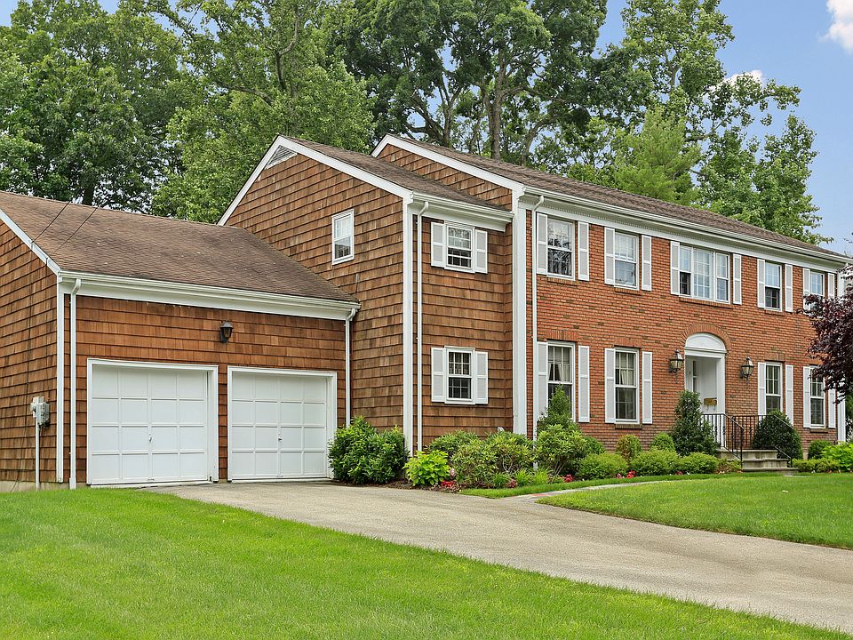 Classic center hall colonial set on quiet street in very desirable neighborhood. Living room, formal dining room, large eat in kitchen, door to private back deck, mudroom/laundry room, door to attached two car garage, convenient back staircase, family room with fireplace, sliding glass door to deck, and powder room. On second floor, there is a large master bedroom, walk in closets, dressing area and master bath with skylight, 4 additional bedrooms plus 2 full baths and huge unfinished space for bonus room or exercise room. Lower level there is a finished playroom, glass doors to back property, huge walk in cedar closet, utilities and massive storage space. Lovely expansive level back garden set on almost 1/2 acre.