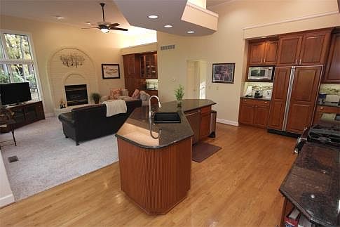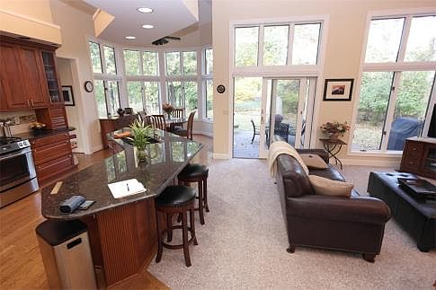 Expansive 4 bedroom cape/contemporary on over an acre lot! Cherry kitchen with granite counters and tile backsplash! Large eat-in area with slider to rear deck! Kitchen opens to family room with gas fireplace, built in wet bar and blanco sink! Formal dining room with oak floor, tray ceiling and bay window! 1st floor master bedroom! Master bath has 2 vanities w/ granite tops, jacuzzi tub and walk in closet! 3 car heated garage with stairs to bsmt! Basement has huge shop area! Irrigation system! Common area by HOA- snow removal/trash/water!