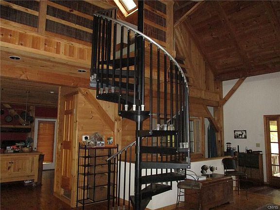 A Rare find this amazing Cape is situated on over Seven Acres with total privacy. The open floor plan with Cathedral ceilings is the perfect setting for your enjoyment! Beautiful Woodwork throughout- including Harwood floors, updated Kitchen, Wood Stove, Track lighting, 2-1/2 Bathrooms with a full Bathroom in the Loft, Spiral Staircase to the upstairs loft. Fully finished Basement with Recreation Room, 1 or 2 Bedrooms, Storage rooms, Laundry Room, Exterior entrance and more. Deck off the back allows for full enjoyment of the private surroundings. *The property also includes an additional out building which could be used as a Studio, Office, or an In Law suite. Country location but only minutes from the city. Notice the impressive Post & Beam construction!