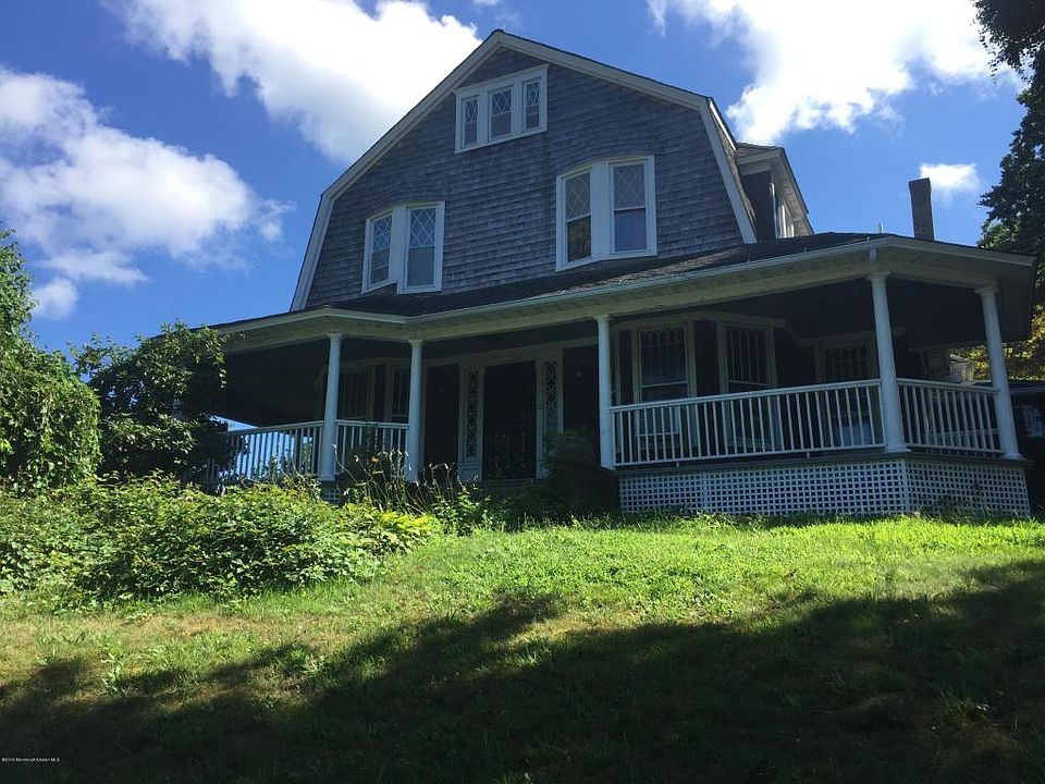 Sitting high on the hill sits a rare find with so much character and charm. This unique ''shingle Style'' home greets you with a flowing wrap around porch 45x45, just redone. This is just the beginning of what this home offers. It need TLC and updating. But is yearning to be brought back to life. Some of the traits of this ''Big Old Beauty'' are chestnut Beamed ceilings,corner fireplace in both living room and dining room, butlers pantry, front and rear stairs, large 2 car garage, water views from upper level,lead glass windows with wooden inlayed inserts, Large Gorgeous carved wooden farm doors. Lots of custom wood work throughout, also many built ins. The rooms are oversized and complimented with cathedral style ceilings in most rooms. A rare find!!!