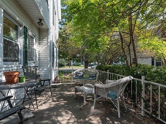 Unique & Rare Opportunity! Delightful, sunny & full of character 2-family home in the heart of Easthampton town center offers 2370 sq feet of living space, lovely front porch & in-town backyard w/private patio, detached 2 car garage (w/electricity), separate utilities. Appealing 1st floor unit has 3 bedrooms, French doors, remodeled open-concept kitchen w/bamboo flooring, custom built-ins & cabinets galore + spacious dining area leading to an outdoor side deck. Bright 2nd floor unit w/2 bedrooms has French doors, spacious master bedroom w/two closets (large walk-in closet), wonderful screened-in side porch w/tree-house feeling, walk-up attic, walk-in pantry. Hardwood floors, Replacement windows (2012), High-efficiency natural gas BOSCH boilers (2012) & on-demand hot water. Laundry area is shared by both units - ALL appliances to remain. Workshop space in basement, Excellent rental history. Perfect investment property or owner-occupied two-family. This one won't last!
