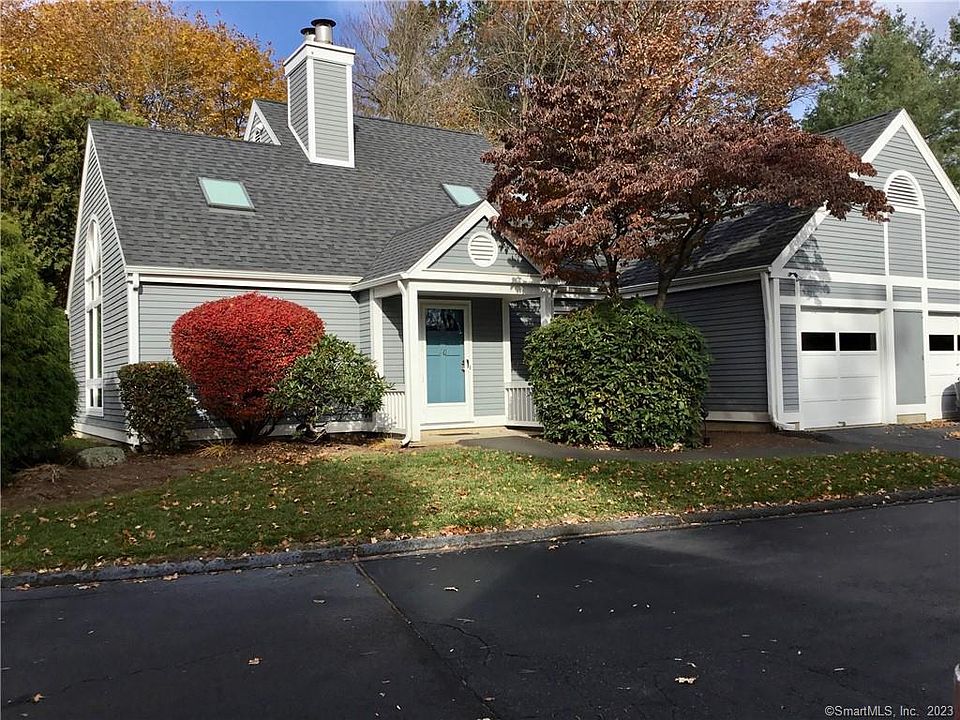 Desirable location, walking distance to town green and downtown Madison. Small complex with only 22 units just behind the Madison Green. Unit offers natural gas and city water. Vaulted ceilings, large oversized windows, skylights with lots of natural light. Open floorplan, hardwood and tile floors throughout. Large living room open to dining room. Gas fireplace. Kitchen has plenty of work and gathering space, breakfast nook, slider to outside patio. Pantry, washer and dryer hookup. Upstairs to a spacious work or siting area in the loft. Primary bedroom has skylights with electric shades, full bathroom, plenty of storage, dressing area. Walk up attic. 1 attached garage. Water heater approx 4-5 yrs old. All skylights were replaced by current owner. Roof approx. 5-6 years old. Unit being sold "As Is". Inspections for buyers' informational purposes only. Agent has a list of modifications that was done by previous owner that is not covered by the association (unit owners' responsibility).
