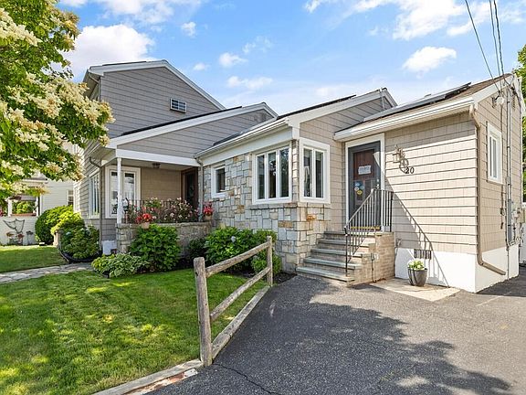 Point of Pines custom built, 5 bedroom, 3.5 bath Contemporary lovingly cared for with tons of amenities. Two main, ensuite bedrooms, den/office, 2 fireplaces, open floor plan living/dining room with hardwood and sliders to a deck and fully fenced yard with patio, heated, inground pool with new pump and shed. Kitchen is situated in the front of the house and is light filled with cherry cabinetry, granite counters, stainless appliances and cozy eating area. Central air throughout first floor, wall units on 2nd level addition. Spacious and warm, this house has a partially finished basement, 1/2 bath, fireplace and workshop with tons of storage. The Point of Pines location with beach access and private association is truly desirable and offers great recreational opportunities. Having five bedrooms is great for accomodating guests or a large family and ensures you have a quiet place to work from home. The inground pool is an added bonus!
