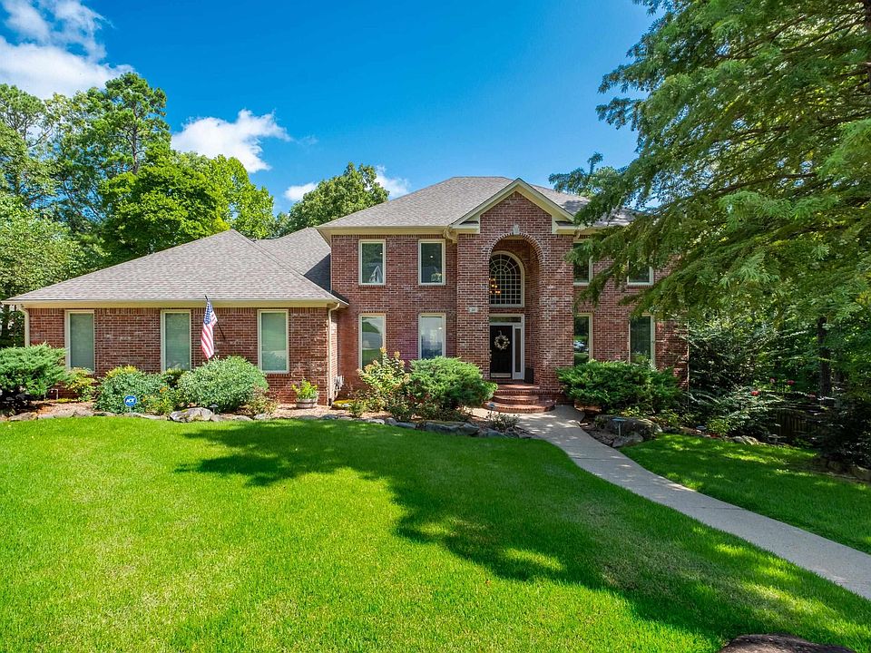 Nestled among mature trees and beautiful landscaping is this lovely traditional home on quiet cul-de-sac. Two story foyer opens to formal living space and separate office/5th bedroom with bath. Formal dining and wet bar area flow into the kitchen, great room and breakfast/sun room. Fantastic kitchen with stainless appliances, granite counters, tons of cabinets and breakfast bar. Great room has built in cabinetry and wood burning fireplace with gas starter. Delightful covered and uncovered decks lead to the inground pool with spa, waterfall and pool bath cabana. Spacious Primary suite has been updated with soaking tub, new flooring and large shower. Upstairs has bonus/game room with half bath, darling guest BDRM with bath, walk-in closet and attic storage. Two more guest bedrooms with shared bath and large closets as well. Oversized 3 car garage with storm shelter. Generator. Roof 2019. Too many updates to list! Come See!