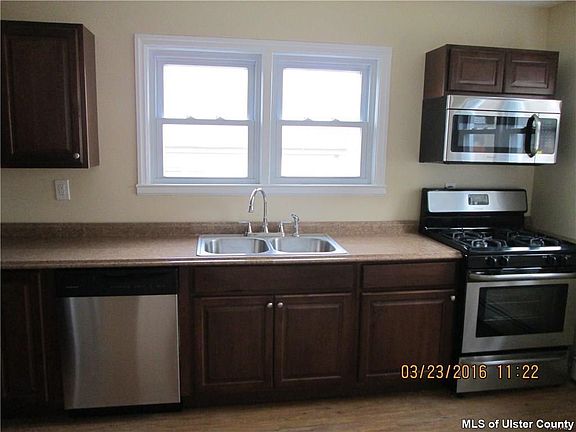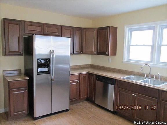 CHEAPER THAN RENTING!!! Newly Renovated!! This home is a must see! Be the first to live here since a total remodel that has just been completed. Beautiful floors and carpeting have been installed, Eat in kitchen with upgraded cabinets and stainless appliances. New bathroom features ceramic tile floors and ceramic tile shower. The outside has been overhauled as well with new vinyl siding, new windows and new doors. The door from kitchen leads to a deck overlooking a fenced in backyard with plenty of room for bbq's. This home is located close enough to town to enjoy several Zagat Rated restaurants, shopping and a professional theatre. Also close enough for hiking at Sam's Point and Minnewaska and within walking distance to NYC bus line.