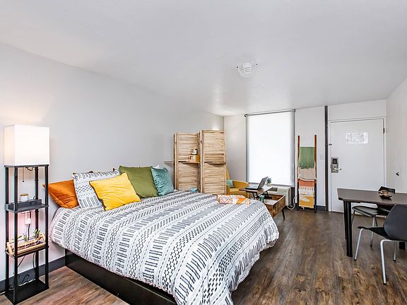 Each affordable cable-ready studio and one bedroom loft for rent includes all utilities, so you feel warm and inviting when you first enter. You'll love preparing meals in your all-electric kitchen with modern stainless steel appliances, a microwave, and a refrigerator, where you can bring your culinary skills to the table. Some apartment homes are already comfortably furnished and waiting for you at Skytop Studio Lofts.