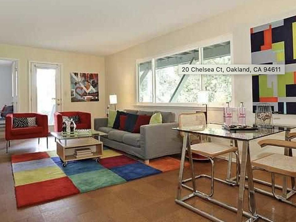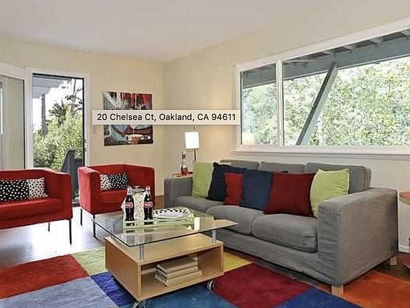 Visit www.20Chelsea.com.On the market for the first time by the original owners is this four bedroom Piedmont Pines mid-century on a picturesque cul-de-sac. Enjoy soothing wooded outlooks and a peek of the San Francisco Bay, random plank hardwood floors, an open floorplan and plenty of outdoor space to roam. Features include: inviting living room with brick fireplace and windows overlooking the front gardens; updated eat-in kitchen with granite countertops, stainless cooktop and adjoining dining area with teak built-ins and sliding doors to the private deck; four bedrooms and two baths with exceptional privacy, including two on the main level and two on the lower level, all with lovely outlooks; large family room on the lower level that can be used for daily living in addition to a home office or gym; two car attached garage with level-in interior access to the kitchen and loads of storage; spacious deck overlooking a park-like setting with peek of the San Francisco Bay view and perfect for outdoor cooking and al fresco dining; located just minutes to Highway 13, Montclair Village, restaurants and public transportation