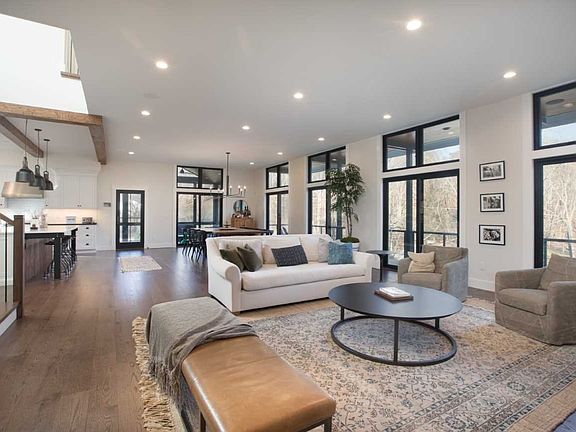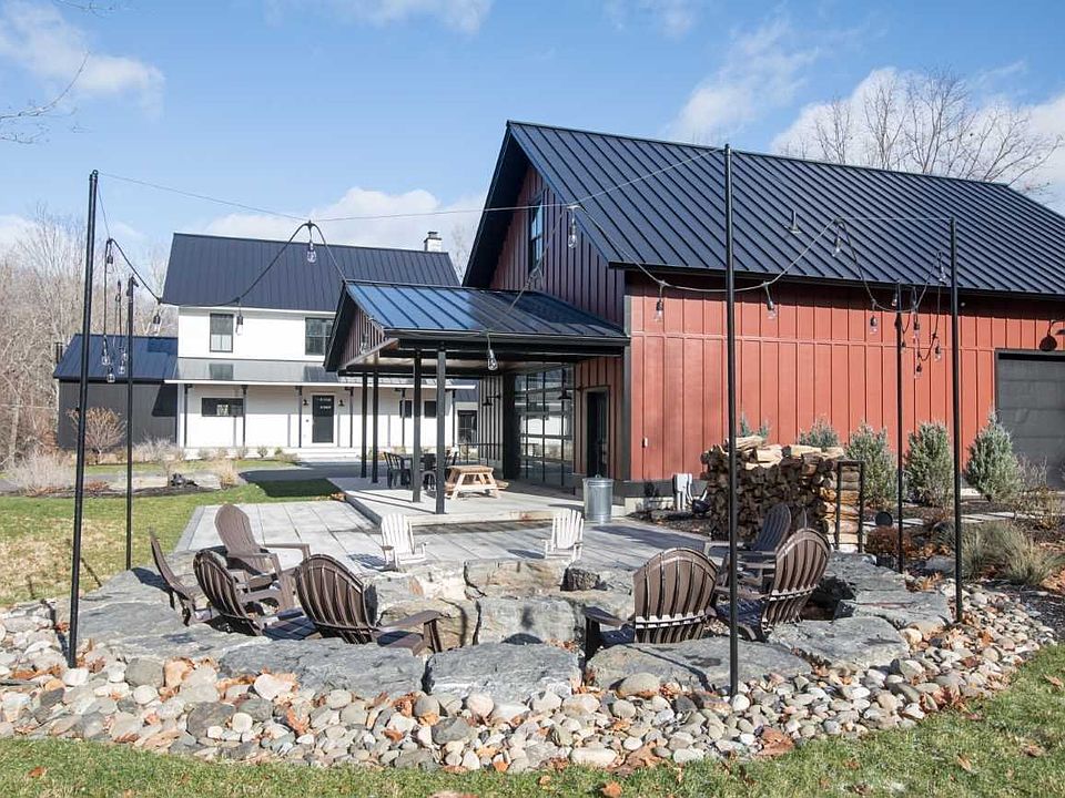 This newly built home with 3 separate lots totaling 7+ acres offers a picturesque retreat on Copake Lake. Spacious rooms with custom detail throughout make for comfortable living and a beautiful indoor/outdoor flow. A central Great Room combines the Living Room with Fireplace, Dining Area, and custom Kitchen with seating Island - all of which opens to an expansive Screened Porch with soaring ceilings and a built-in grilling area. Three EnSuite Bedrooms, including the Primary Suite with private Office, complete the upper level. The Lower Level Family Room includes a full Bath, Bunk Room, and full wall of French Doors that open to the backyard toward the Lake. A Mudroom, Laundry Room and 2-bay Garage complete the Main Home. A separate Recreation Barn boasts incredible entertaining space with radiant heat throughout, a glass overhead door that opens to the Covered Porch and an abutting Stone Patio with Firepit. The Upper Level of the Rec Barn includes a finished Studio/Office space with industrial-chic accents. A separate Equipment Barn provides more usable space for hobbyists. Enjoy Copake Lake all four seasons from your own lake frontage that includes parklike amenities for boat storage, picnicking, and a private dock. Immerse yourself in the heart of the Hudson Valley from this incredible Copake Lake country respite!