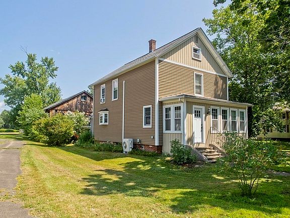 Charming farmhouse with antique tobacco barn on 1.41 level, farmable acres. Spacious and open kitchen, dining and living rooms. Enjoy the extra storage in the pantry off the kitchen. Nicely remodeled bath with large walk in shower. Back door opens in to a large, convenient laundry/mudroom. The enclosed front porch is a lovely place to relax. Enjoy farmland views from the large wrap-around cedar deck, where hot air balloons are often seen to dot the sky. Add to that apple and English walnut trees, wisteria and plenty of lawn on which to play. Are you a homesteader? Let the open field feed your goats and chickens, or be the landscape for your gardening projects, or both! There is space for all of it here. To top it off, this property is near historic Main Street, schools, library, Pioneer Valley Vineyard and the beautiful CT river dyke. Property being sold as is