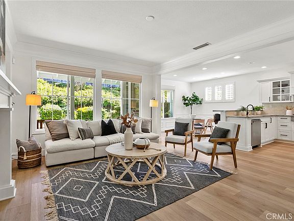 Discover the essence of turnkey perfection and energy efficiency in this highly upgraded Ladera Ranch residence. Boasting a gourmet kitchen with custom cabinetry, high-end Wolf, KitchenAid, and Liebherr appliances, a farmhouse sink, stone countertops with a large seating area, expansive kitchen nook with custom wainscoting; all open to the spacious family room with fireplace. You will love the elegant luxury vinyl hardwood floors throughout the downstairs, high ceilings, custom moldings, and built-in two-sided fireplace. This home has all the right spaces including a downstairs room perfect for an office, playroom, or guest room with a full downstairs bath. As you head upstairs, you will love the new contemporary staircase that creates a stunning entry with soaring ceilings and natural light. Upstairs, the primary suite offers a spacious room with custom built-ins and high-end textured wallpaper. The primary bath was recently remodeled and offers a spa-like retreat with a spacious shower and large soaking tub, custom vanity with marble countertop, and his and hers walk in closets. Upstairs, there are three additional secondary bedrooms, a laundry room with sink, and a built-in desk/workspace, all with brand new carpet! This home is not just beautiful, it is energy efficient! Including owned solar panels, a new HVAC system, new LED lighting, and newer appliances. You will love your tranquil and private outdoor living space, perfect for entertaining. This home is also located on a desirable culdesac; close to restaurants and shops, the town green where many community events take place, as well as zoned for the highly desirable Chaparral Elementary. You get the best of both worlds with this home, new, open, energy efficient and the Ladera Ranch lifestyle that exudes community and resort style living with unsurpassed amenities. Hurry, it won’t last long!