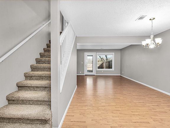 Updated 2 bedroom 1.5 bath in Chisholm Creek. You will love the light and airy feel as you enter the home. The roomy kitchen has a range, refrigerator, dishwasher, microwave and disposal with a pass thru to the dining/living room. Living room with new patio door & picture window overlooking the fenced patio area. There is also a half bath on the main floor. Upstairs you will find two bedrooms, full bath & separate laundry room. The unit comes with a carport at no additional cost. You won't have to worry about a storm shelter, as there is one in the development. Call today for your private showing.