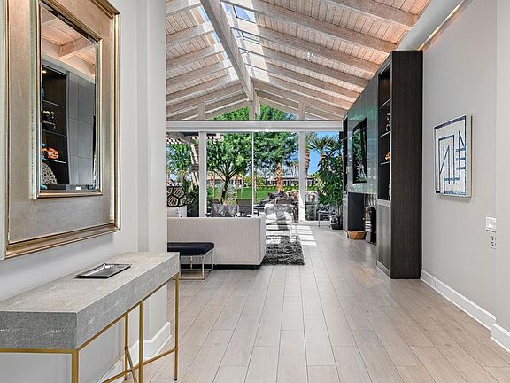 Sprawling and stylish, this one-of-a-kind property offers a rare opportunity on coveted Churchill Lane at Morningside. The premium lot on a double-wide fairway showcases its amazing views.Walls of floor to ceiling glass capture the iconic golf course views from the living/dining/entertaining spaces. Updated throughout, including three newer energy efficient AC units and full house ducting. The custom fabricated entry gate and the monumental wood beamed ceiling give this Shaughnessy floor plan its signature look. The master suite exudes opulence, with its expansive dual walk-in closets, fireplace and two separate en-suite bathrooms. Three additional guest suites provide room for friends and family.Step outside into your own private oasis, where a sparkling pool and spa await. Surrounded by lush landscaping and towering palms, this outdoor sanctuary is the perfect place to unwind and entertain. With its impeccable design, sumptuous amenities, and prime location, this handsome home offers the epitome of refined living.