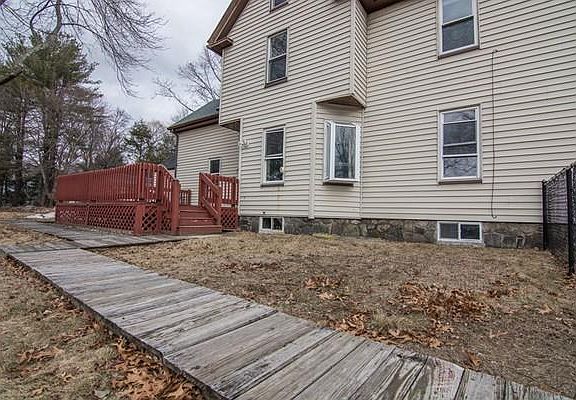 New England farmhouse on large 1/2+ acre level lot. Walking distance to commuter rail, shopping and High School. Move in ready or make it your own with cosmetic touches. Solid house in good neighborhood with a great yard. Walk up attic is HUGE with unlimited potential. Great for an extra bedroom or play area. Second floor has 3 bedrooms plus a large office. Great price point for first time home buyers or for those who need more space.