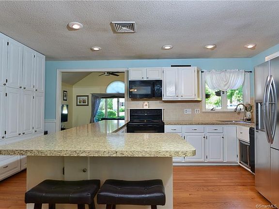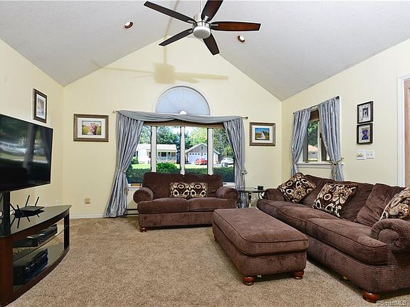 Quality Large Country Ranch. Open Floor Plan - Newer front sunken Living room with Cathedral Ceilings. Updated Cooks kitchen with plenty of counter & storage space. Breakfast Bar & full wall of cabinets, new stainless steel fridge & wine cooler . Large Opening to Dining Room - beautiful fireplace with Wood carved mantel - hardwoods - slider to huge deck to enjoy private landscaped yard. Large Master Bed Room with Private Bath. 2 additional beds & updated full bathroom. Newer carpets in bedrooms. Huge finished Lower level Family Room with built in bar. Handy mud room with vaulted ceiling & skylight. . 2 Car detached Garage. Large Storage Shed. Pretty mature yard at the end of lovely Cul de Sac. .98 Acre Lot. Newer Central Air.. Great location close to everything. minutes to 395. Pride of ownership Don't miss this one