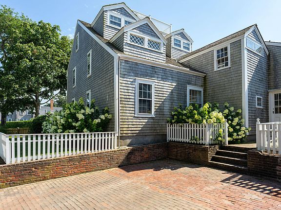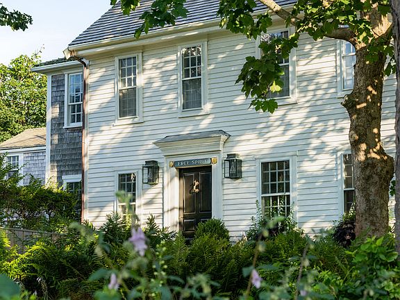 This historic home on Cliff Road was originally built in the 1700s and has been thoughtfully updated over the years, most recently with a renovated kitchen and new bathrooms in 2020. The interior of the home is light and bright bright with ample windows facing south which allow the home to take advantage of the sun. There is a wonderful garden in the back of the property with a bricked patio and pergola for outdoor dining or enjoying the sunshine and fresh air. Located at the beginning of Cliff Road, only moments from downtown Nantucket, this home is in an ideal location to take advantage of the harbor, shops, restaurants and museums just out your front door. First Floor The brick path from Cliff Road leads to the front entry of 20 Cliff Road. The entry has many original details including the exposed beams and original staircase. There is a reading nook with windows that overlook the backyard and garden. The powder room and coat closet are in the front entry. To the right is a living room that faces Cliff Road and has a fireplace. Off of this room is a small library. Toward the rear of the house is a dining room with fireplace and windows that face the backyard. The kitchen, pantry/wet bar and breakfast area are located off of the dining room. The kitchen has an entrance to the parking area, and there are French Doors which lead to the brick patio in the back of the house where there is a dining pergola. The eat-in area of the kitchen has additional windows overlooking the backyard and stairs lead to the second floor. There is a laundry area off of the kitchen with a separate entrance that also leads to the driveway. Second Floor The second floor can be reached from stairs in the kitchen or the front entry. The front stairs lead to a landing by the primary suite. This bedroom has a fireplace, two large closets and an en suite bathroom with a tiled shower. There is a full bath located on the landing at the top of the stairs. Toward the back of the property is a large bedroom with a fireplace, as well as two more bedrooms and a full bath. Third Floor The third floor has a guestroom and full bath with shower. There is access to widows walk which has panoramic views of the harbor, Coatue and Nantucket Sound. Basement The lower level is unfinished and has plenty of storage space. There are two egress windows and an egress stairwell with a French Door to the exterior.