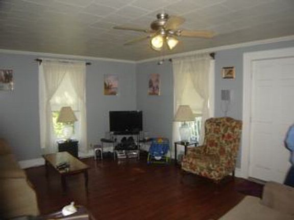 REDUCED! Tastefully remodeled 1 1/2 story home conveniently located in town. Main level has an open floor plan with Living and Dining and large Kitchen with good storage and tile countertops. Also, has a good sized Bedroom w/ceiling fan. There is a large mudroom and full sized Bath. Upper level has 2 larger bedrooms with Bath between them. Washer and Dryer hook ups located in walk in closet. Other special features include: Up dated breaker box, fenced front yard, metal roof, large covered front porch.
