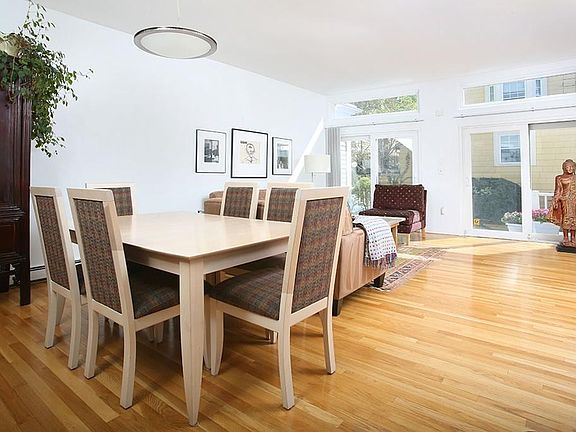 Excellent Mid-Cambridge location with easy access to Harvard, Central and Inman Squares. This pristine 1641 square-foot two-plus bedroom condominium has it all; a renovated kitchen with granite counter tops and Miele appliances, a half bath, an open concept living and dining room with sliding doors that lead to a private deck and beautifully landscaped patio and garden area. The second floor includes two bedrooms a full bath and laundry. The third floor offers a generous sunlit studio with skylight which also serves as a guest room with fold away Murphy bed. The unit also includes a private finished basement and one parking space. Hardwood floors on first and second floors, central AC, renovated baths, security system, upgraded energy efficient windows, skylight and sliding doors. Building re-roofed 2016.Seven unit self-managed condominium association. The association has additional common guest parking spaces. This is a non-smoking condo association. No dogs, cats with board approval.