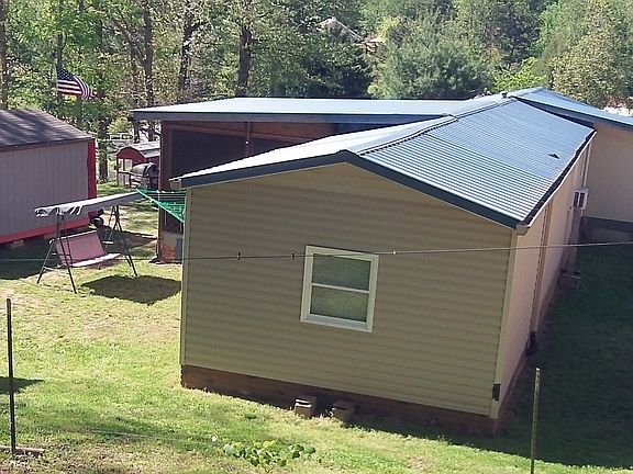 Master bedroom has a walk in closet and a built in wardrobe. Master bath has just been remodeled with a new walk in shower. Second bedroom has been extended to make a larger bedroom and has just been painted. Kitchen has been remodeled with lots of extra cabinets. All new insulated windows, a new metal roof, and gutters. Has a screened in porch and a dried in porch with concrete sidewalks that go from the driveway to both the front and back porches. Also has a storm shelter or root cellar whichever you would like to make it. Move in ready.