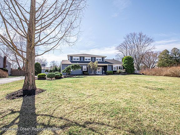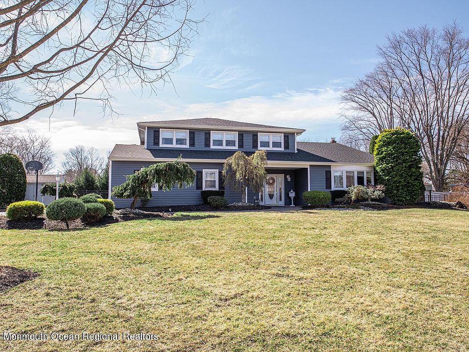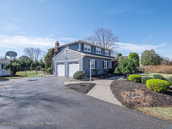 WELCOME HOME! Freehold Twp. 4 bed 2.5 bath w/partial finished basement on over 1/2 acre complete w/deck and pool. Enter into your spacious foyer w/ceramic tile & plenty of closets. Hardwood Fl. in formal LR/DR. Get cozy in your family room w/ wood/gas FP. Enter into updated Eat in Kit. w/granite counters , new Stainless appliances. Sliders lead to Trek Deck w/ electric awning & built in swimming pool. Fenced in yard is completed by mature professional landscaping & shed. 3rd level boasts 2 updated baths. Bedrooms have hardwood under the carpet. Basement is perfect flex space. Sellers have meticulously maintained this house including new roof and siding (2020) Close to Rt 9 & NJ Transit. Freehold Raceway Mall minutes away. Close to NJ Shore Beaches. DON'T MISS THIS ONE!