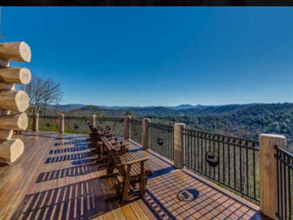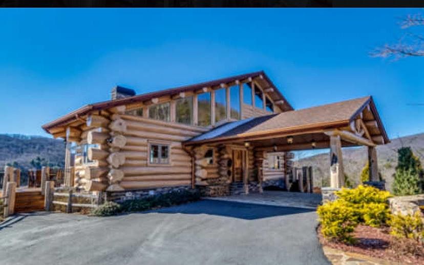 Exquisite British Columbian Hewn Log Home perched on generous and gentle lot in paved Aska Road Community just a "stone's throw" from Rich Mtn Wilderness Area - close to Lake BR, Toccoa River, USFS & historic downtown....VIEWS TO DIE FOR!!....4 bedroom suites/3.5 baths, intricate carvings, massive stone fireplaces, glass galore, soaring ceilings with rustic beam detail, gourmet kitchen, granite counters, great mix of wood, stone & tile for a modern rustic ambiance, outdoor firepit & stunning water features...plentiful porches & decks perfect for entertaining or relaxing, loft, rec room...too much to mention and well established rental...A TRULY UNIQUE LODGE in the heart of the mountains!
