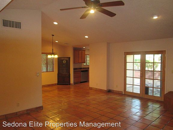 $1625 - Wonderful Single Family Home With Great Views! - 2BR/2BA single family home located in the Village of Oak Creek. Wonderful red rock views. Built in 1985, exquisitely remodeled, and approx. 1,342 sq. ft. Great room concept and split bedroom plan. Living room features wood burning fireplace, French doors to the backyard and Saltillo tile. Dining room has a corner unit for storage. Kitchen highlights granite counter tops, gas stove and S.S.appliances. Master bedroom showcases spacious closet and French doors to the backyard. Master bathroom highlights two separate sinks with granite counter tops and tub/shower combination. Second bedroom has carpet and second bathroom has tub/shower combination. Laundry room with washer/dryer. Beautiful lush backyard with water feature, red rock views and timed irrigation system. Double car garage with storage. $1,625/mo. Small Pet Allowed. NO SMOKING. Landscaping included in the rent. $500.00 Refundable Cleaning Deposit. We do not advertise on Craigslist so if you see this property on there it is a scam. Tenant pays utilities of electric, propane, and water. Landscape maintenance included. No Pets Allowed (RLNE5703832)