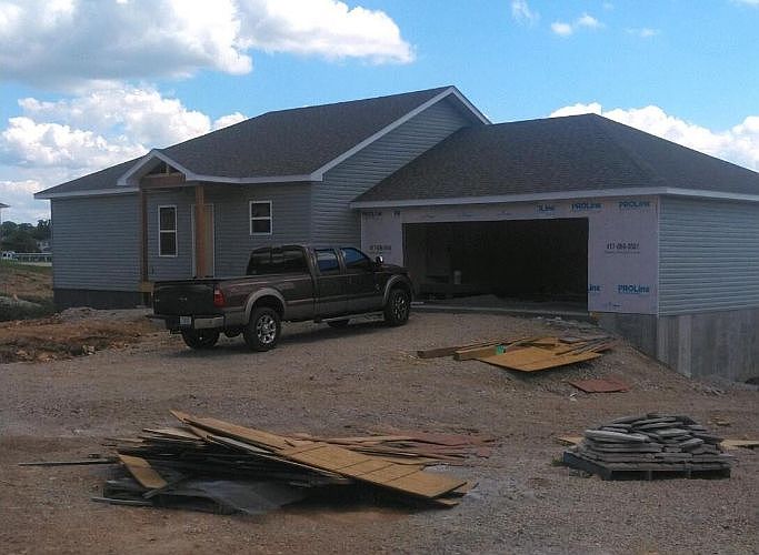 New Construction -September 2022 completion on this 3 bedroom 2 bath home with large deck and patio to enjoy the Ozark beauty and view overlooking a pasture. Great location and easy access to schools and shopping. Finish work will be with laminate flooring, carpet, granite countertops, 4 inch base trim, nice cabinetry and fixtures. Master Suite on main level. Lower level has 2 bedrooms, bath and spacious recreational room and storage. Oversized garage 29 x 28 with 18 ft door. Large lot. If you are wanting to select finishes, don't wait too long.