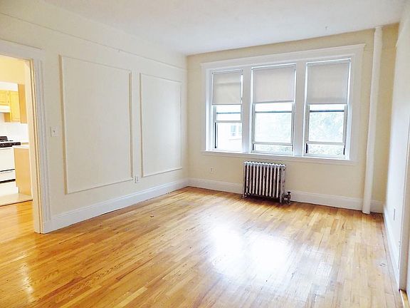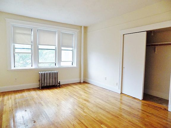 Studio apartment for rent off Commonwealth Avenue. This unit features a separate eat-in kitchen, hardwood flooring throughout, and a ceramic tiled bath. The foyer is huge and can double as a small office. Large living/sleep space with double closet. This building is professionally managed and landscaped. Just a couple minutes' walk to the T, close to Allston Village, Brighton Center, and Cleveland Circle. Whole Foods, Chansky's, and cafes and shops all close by. Great neighborhood! Laundry is located on this first floor. Parking available out back (first-come, first-serve basis). Heat and hot water included in the rent.