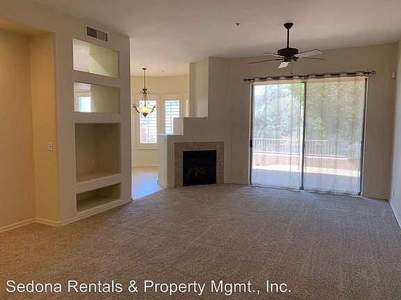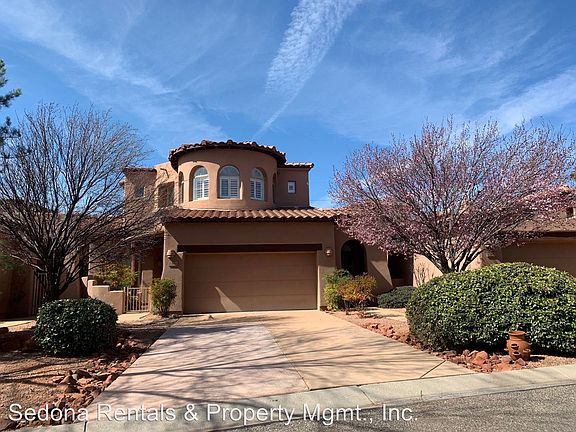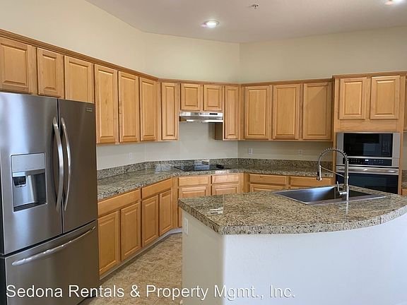 LAS PIEDRAS, VILLAGE OF OAK CREEK - Located in Las Piedras, this property is in immaculate condition. 2369 square feet, 2 story with master suites on lower and upper levels. 3 bedrooms plus large loft, 3 1/2 baths, sweeping elegant staircase to upper level, gas fireplace in living room and the kitchen features granite counters, a breakfast nook and all brand new stainless appliances. The garage floor has a brand new epoxy finish. Covered back patios on upper and lower levels, and large laundry room with washer/dryer. Community pool and BBQ area. Price includes monthly sewer. Owner to manage, Sedona Rentals is securing the tenant only. Pet negotiable. Available now! No Cats Allowed (RLNE4195311)
